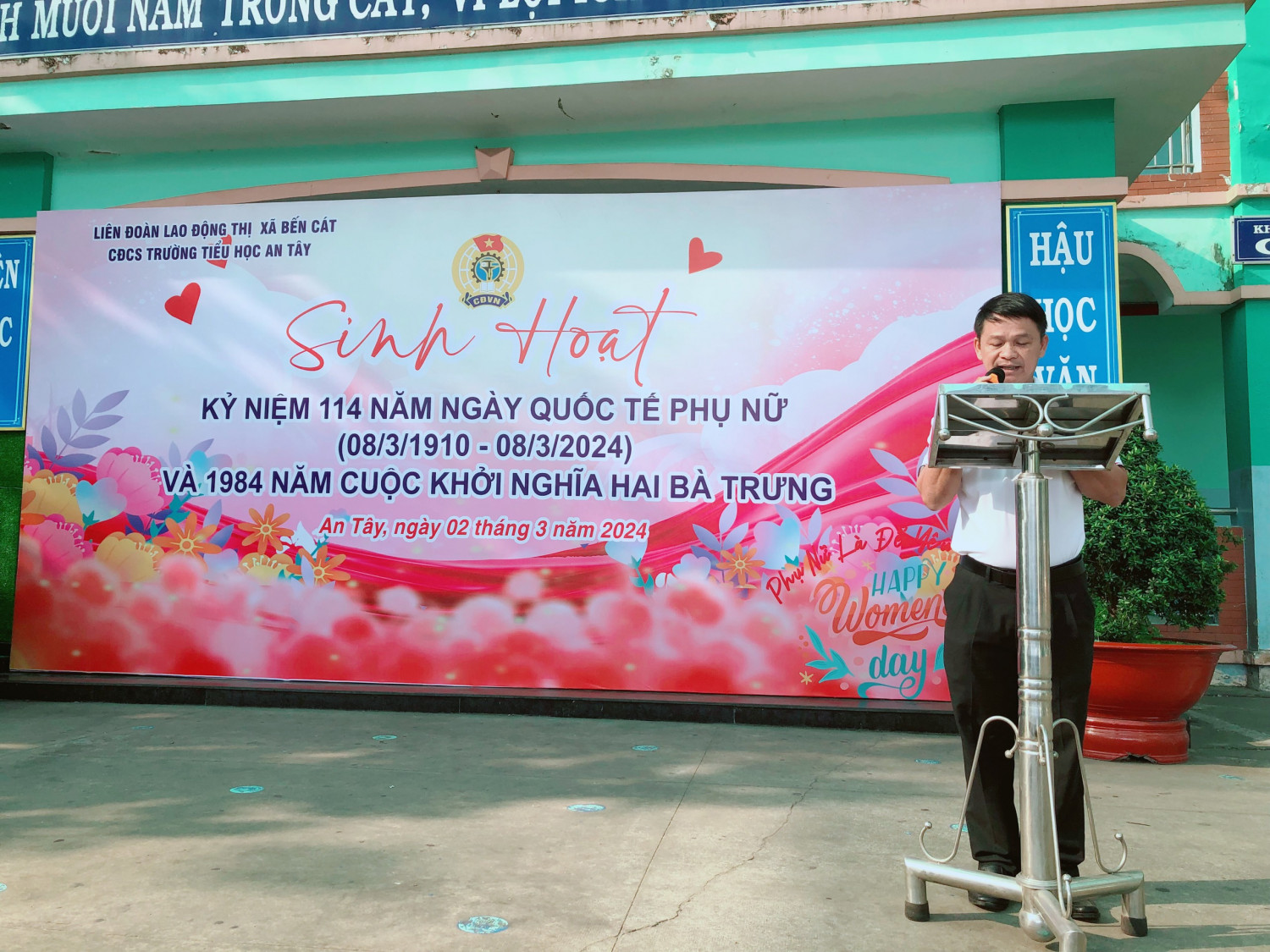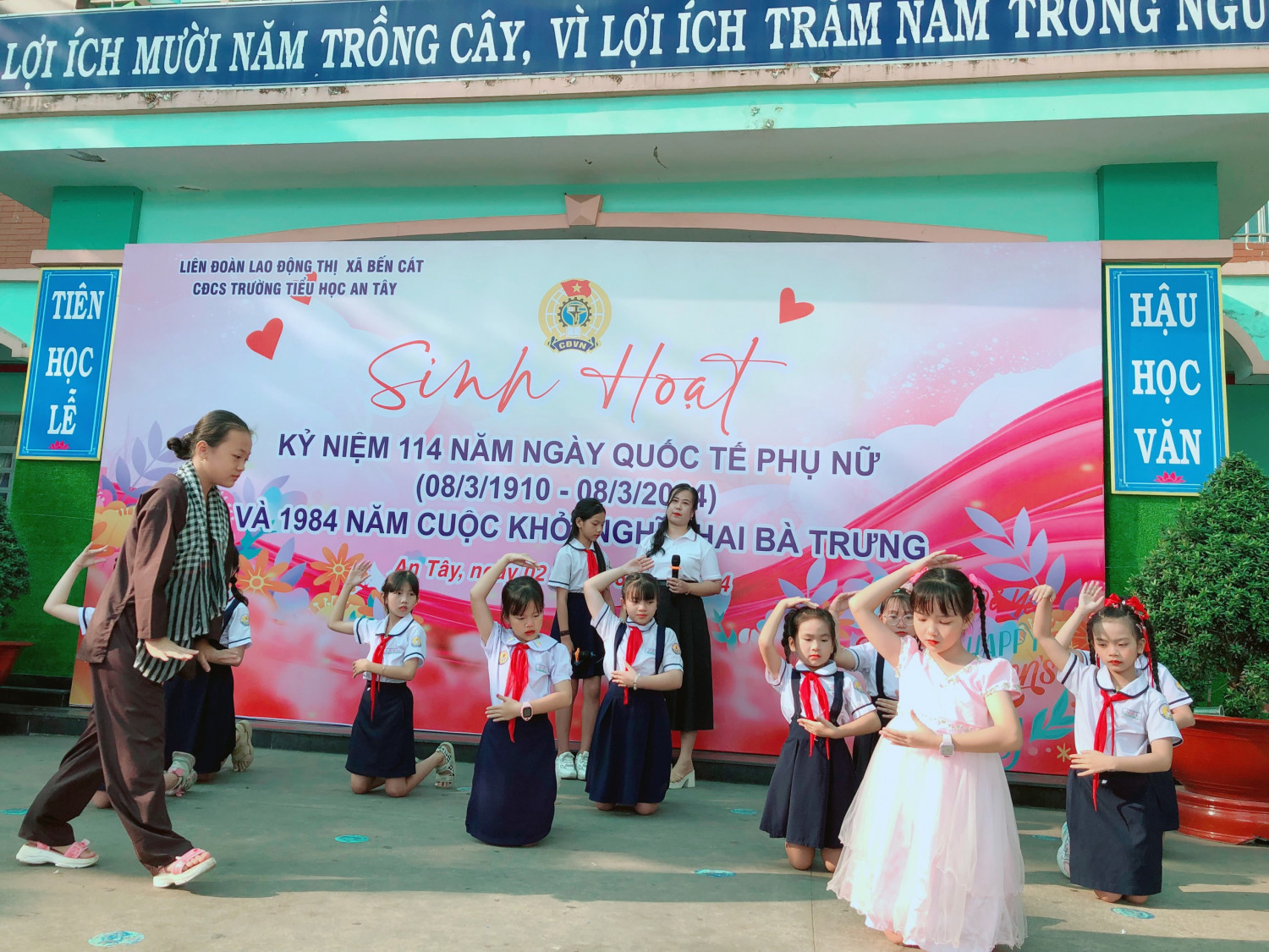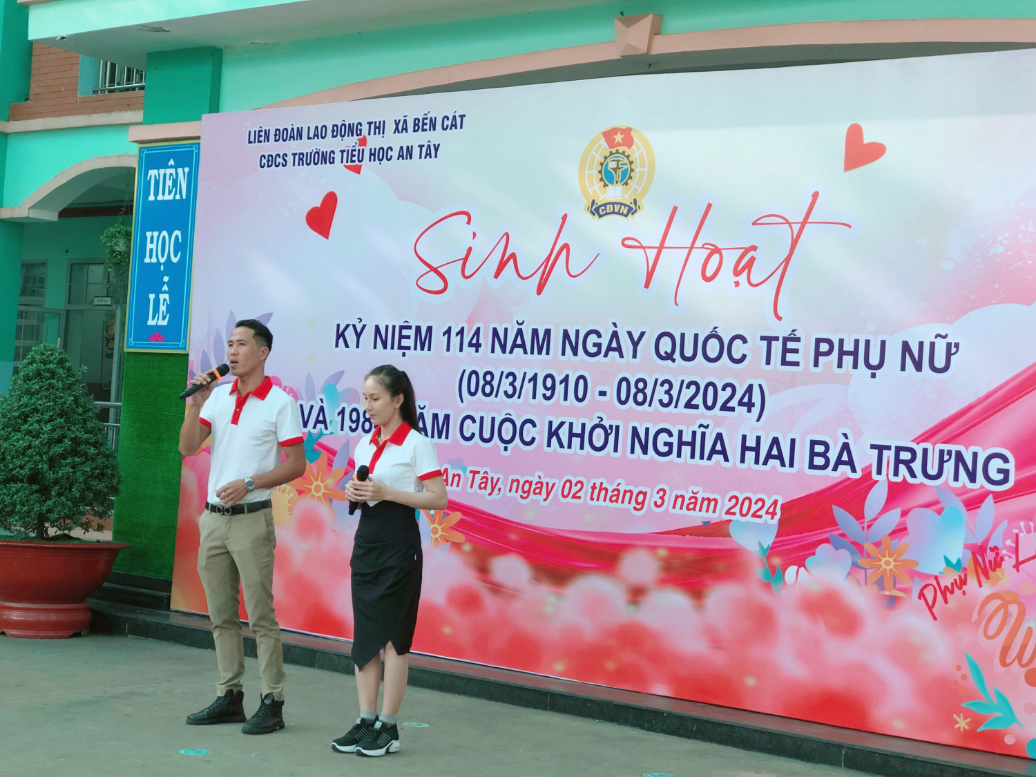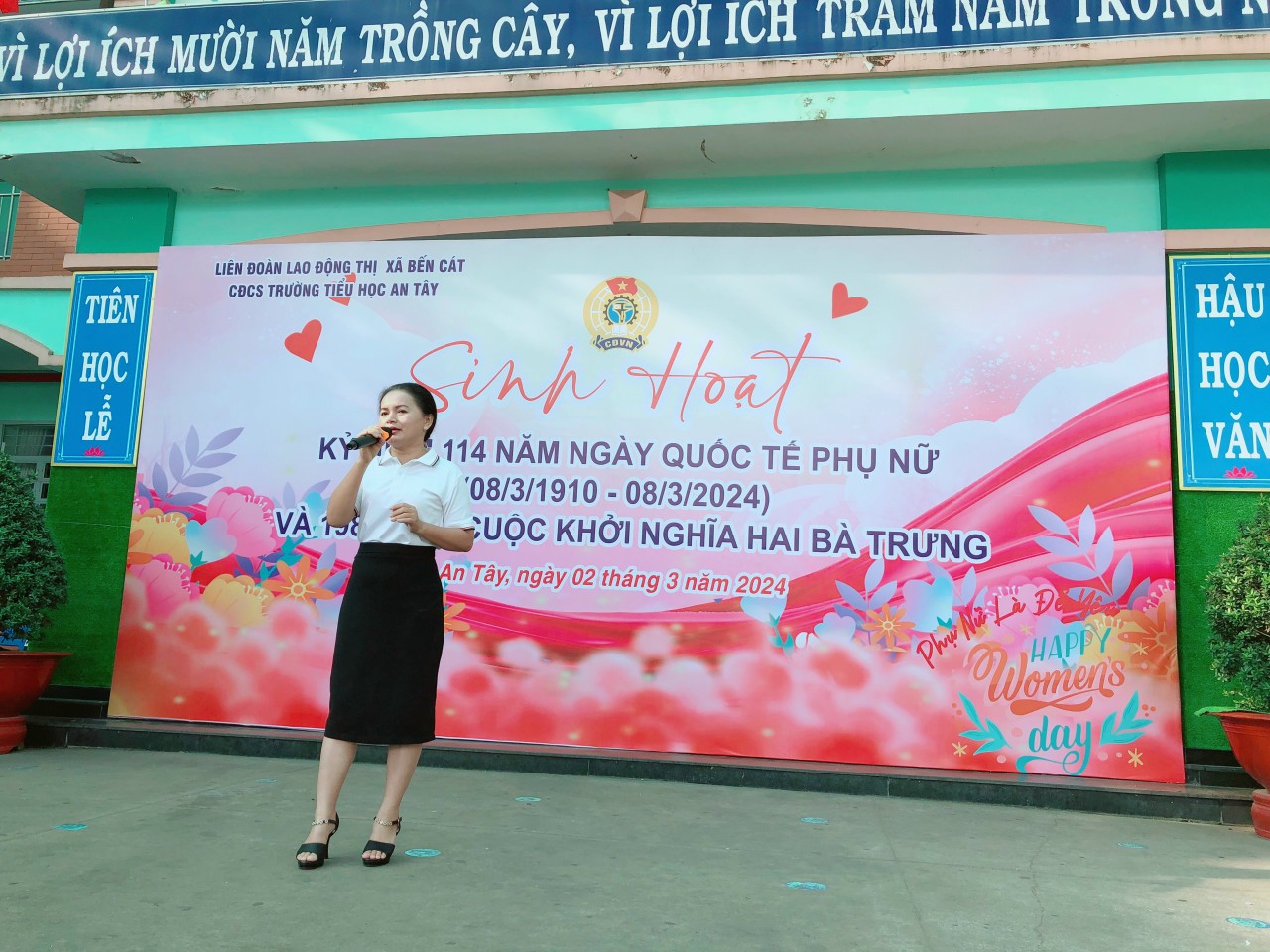 Sáng ngày 02.03.2024 Công đoàn cơ sở Trường Tiểu học An Tây tổ chức buổi sinh hoạt kỷ niệm 114 năm Ngày Quốc tế Phụ nữ (08/03/1910 - 08/03/2024) và 1984 năm khởi nghĩa Hai Bà Trưng