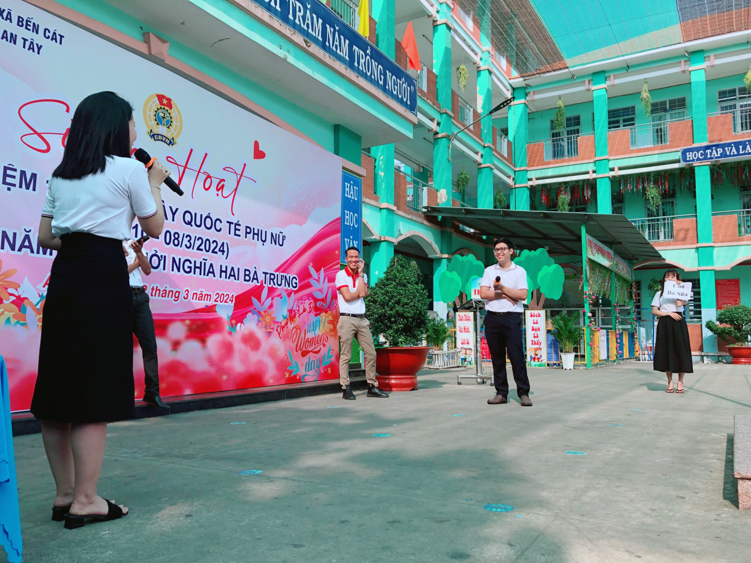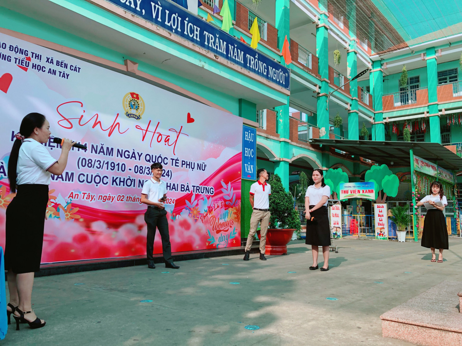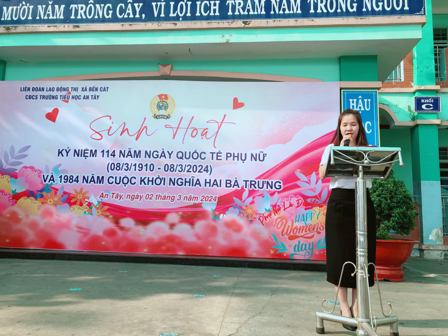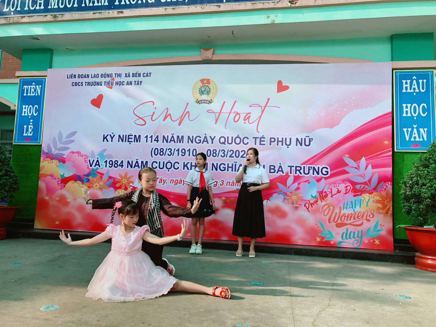 Sáng ngày 02.03.2024 Công đoàn cơ sở Trường Tiểu học An Tây tổ chức buổi sinh hoạt kỷ niệm 114 năm Ngày Quốc tế Phụ nữ (08/03/1910 - 08/03/2024) và 1984 năm khởi nghĩa Hai Bà Trưng
