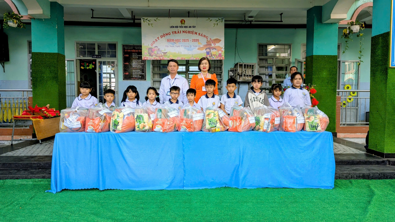 Ngày 02/02/2026 trong tiết sinh hoạt dưới cờ Trường Tiểu học An Tây phối hợp với Công ty TNHH đầu tư kinh doanh và phát triển Hà Thành, Công ty TNHH Four Seasons Vina trao tặng quà Tết cho các em học sinh có hoàn cảnh khó khăn. Những món quà không chỉ mang giá trị vật chất mà còn là nguồn động viên tinh thần, góp phần mang đến niềm vui, sự ấm áp để các em vui xuân, đón Tết. Hoạt động thể hiện tinh thần trách nhiệm xã hội của doanh nghiệp, đồng thời lan tỏa giá trị nhân văn và sự sẻ chia trong cộng đồng.