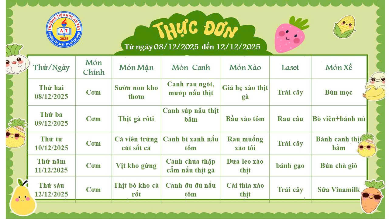 THỰC ĐƠN TUẦN 14 (Từ ngày 08/12/2025 đến 12/12/2025)