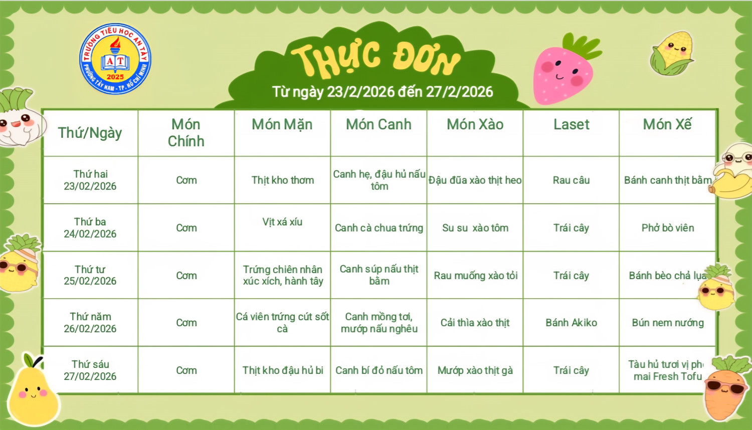 Thực đơn tuần 24 (Từ ngày 23/02/2026 đến 27/02/2026)