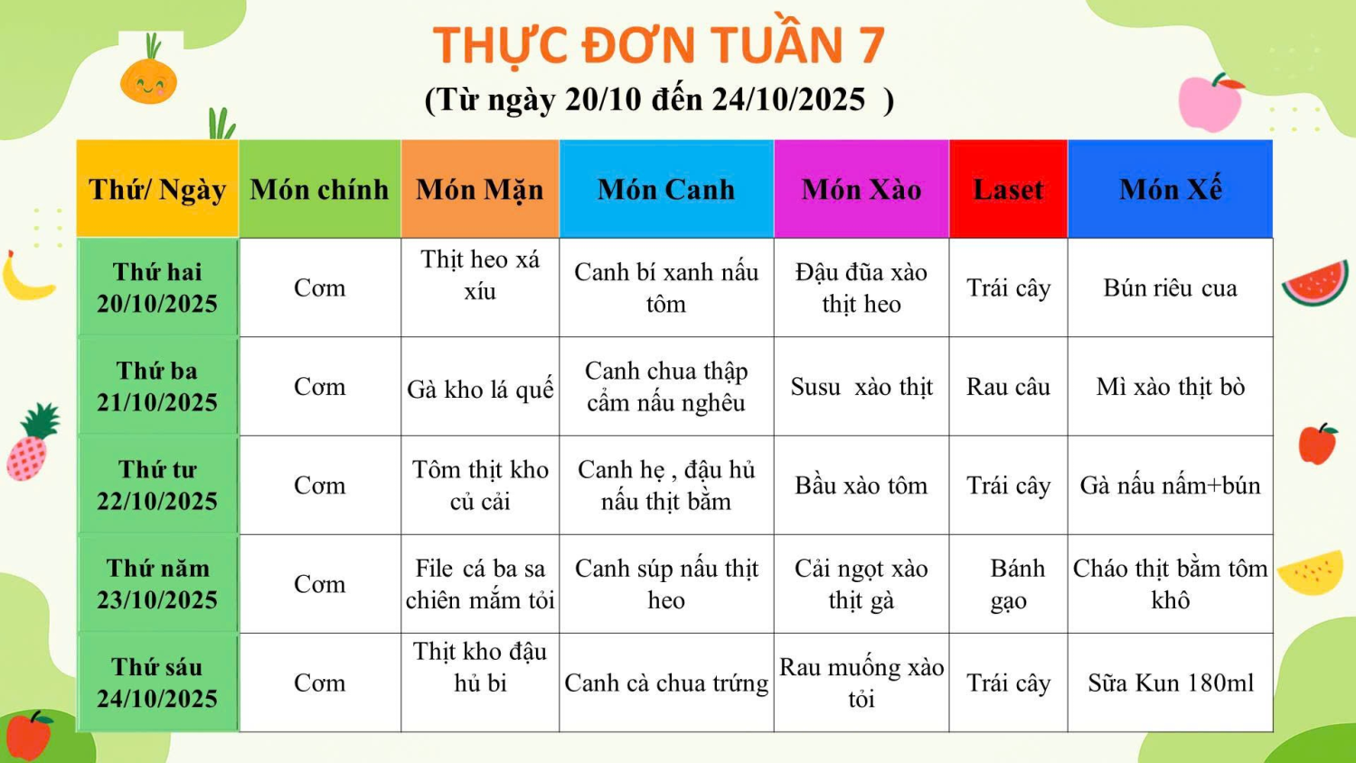 THỰC ĐƠN TUẦN 7 (Từ ngày 20/10/2025 đến 24/10/2025)